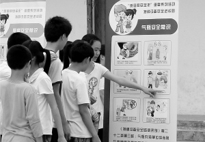 为确保学生暑期安全,市质监局举办“特种设备安全进校园”活动,通过漫画式图片宣传、视频以及知识问答等形式向学生宣讲特种设备的安全使用常识。(记者 王映 摄)