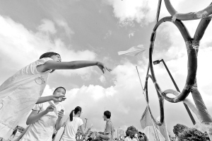 “莫拉克”搅局 浙江舟山“全民健身日”庆祝活动提前 8月7日,一名孩子在舟山“全民健身日”庆祝活动上参加趣味游戏。为避开今年第8号台风“莫拉克”的影响,浙江省舟山市将原定于8日举行的“全民健身日”庆祝活动提前到7日举行。 新华社发