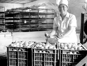 昨日,太康县常营农场返乡农民工张银华正在厂房里捡拾鸡蛋,准备出售。张银华和丈夫一直在外地某企业打工,去年10月返乡后,在当地工商部门的帮助下,他们贷款40多万元创办了太康县常营蛋鸡养殖专业合作社,吸纳周边70多户蛋鸡养殖户入社。目前,该社已实现了赢利,走出了一条“外出创收,返乡创业”的成功之路。