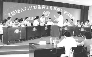 为了更好地宣传人口计划生育工作条例,沈丘县人口计生委组织了专项知识竞赛,全县各个乡镇、办事处的60多名计生工作人员参加了竞赛,为扎实搞好新时期流动人口计划生育服务管理工作奠定了坚实的基础。图为知识竞赛现场。 (记者 孙安平 李柯 摄)