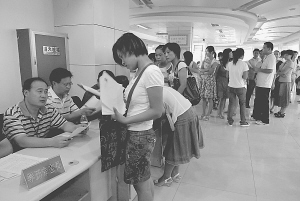 8月10日至13日是市直学校公开招聘教师报名的时间。据了解,我市市直学校这次公开招聘教师125名,包括中学教师和幼儿教师。图为工作人员对应聘人员进行资格审查。记者 孙安平 摄