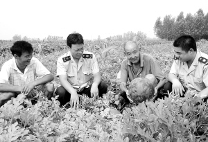 近年来,扶沟县工商局围绕当地特色产业,积极培育农村经纪人,重点发展了一大批懂法律、讲诚信、精业务的农村经纪人,切实解决了农民的“卖难”问题。图为该局工作人员和农村经纪人深入到田间地头了解西瓜的销售情况。
