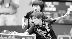 8月16日,中国队球员丁宁/刘诗雯(右)在比赛中。当日,在天津进行的中国乒乓球公开赛中,丁宁/刘诗雯战胜队友曹臻/李晓丹,获得冠军。 新华社记者 王晔彪 摄