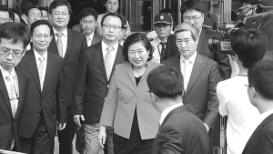 玄贞恩回到韩国 8月17日,韩国现代集团会长玄贞恩(中)抵达位于韩国京畿道坡州市的都罗山南北出入境事务所,结束了为期8天的朝鲜之行。玄贞恩8月10日前往朝鲜访问,16日受到朝鲜最高领导人金正日的接见。随后,朝鲜亚太和平委员会与现代集团达成了关于南北经济合作和离散家属会面的5点协议。