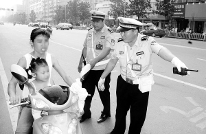 昨日,我市交警部门开展专项行动,对非机动车辆进入快车道进行查处,确保市区道路安全、畅通。(记者 李寒 摄)
