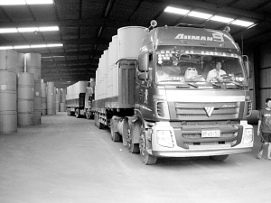 近日,太康县龙源纸业公司正组织车辆外运成品。该公司是我省造纸工业企业中依靠低成本扩张、实现跨越式发展的典型。从2000年自筹100多万元租赁太康县濒临倒闭的小造纸厂起步,经过8年努力,到2008年底,已发展成为拥有4个全资子公司,利税总额8000万元的大型跨省集团企业,年产20万吨高强瓦楞纸三期项目已于近日开工建设。(记者 刘俊涛 摄)