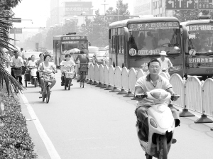 驿外断桥边:五一广场附近的慢车道、人行道混用,很不方便。