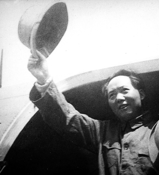 1945年8月28日,应蒋介石邀请,毛泽东、周恩来、王若飞在美国驻华大使赫尔利、国民党政府代表张治中的陪同下从延安乘飞机抵达重庆,为商讨团结建国大计,中国共产党同国民党开始重庆谈判。 新华社发