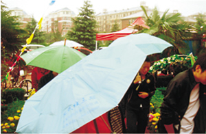 29日早晨,下起秋雨,为避免客户着凉,原计划6:00发放的排号卡提前到5:00,让客户到售楼部休息等候,还为客户准备了丰盛的早餐。