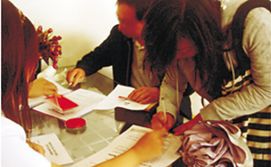在礼仪小姐引领下,每3人一组由幸福门进入售楼部,销售人员向客户详细讲解了登记流程和注意事项,提醒客户认真阅读VIP排号活动须知相关规定并签字确认,然后指导客户仔细填写VIP排号活动申请书,并按上红红的手印,交诚意金,发放VIP卡。