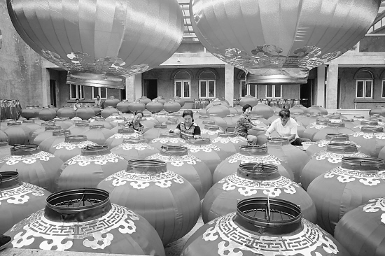 赶制大红灯笼迎国庆
