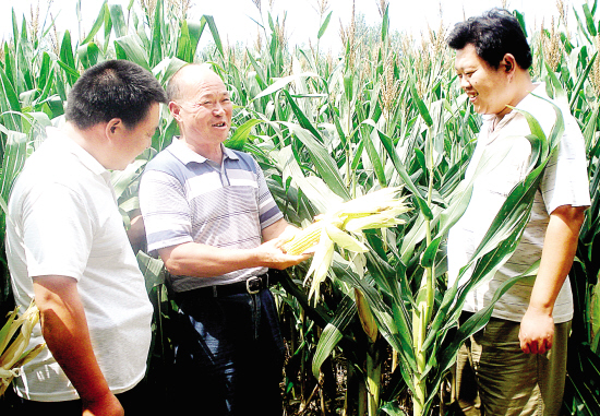 昨日,农业技术人员正在玉米地里向农民传授秋作物管理知识。为减少风灾给秋粮造成的损失,确保秋粮产量,连日来,我市各县市区积极组织农业技术人员深入田间地头,指导农民做好秋作物后期管理工作。 (记者 孙安平 摄)