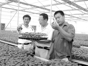 今年,扶沟县蔬菜局科技人员深入乡村,对农民进行蔬菜技术培训,介绍优良品种,帮助农民增收。图为该局技术人员为帮扶户选购优质蔬菜种苗。(谷志方 摄)