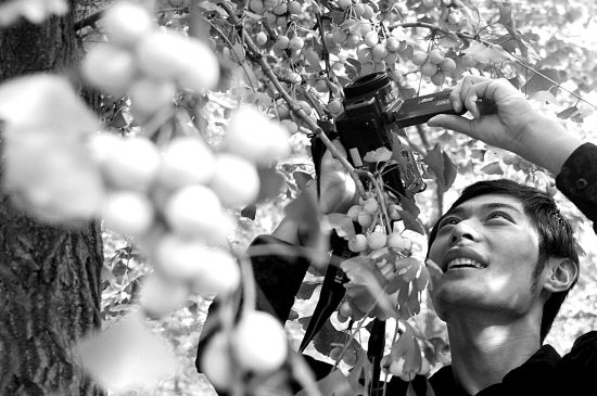 9月12日,山东省郯城县网络技术人员在新村乡银杏丰产园采集银杏的图像信息资料。今年山东省郯城县30万亩银杏喜获丰收,当地农民把银杏果加工后销往海内外市场。(新华社发)