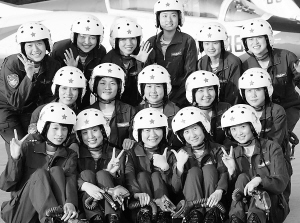空军首批战斗机女飞行员精彩亮相国庆阅兵 2009年的国庆,天安门上空将出现一抹靓丽的色彩:空军首批战斗机女飞行员将首次代表中国空军女飞行员驾驶国产战斗机参加空中受阅。图为空中女飞行员梯队16名成员全家福。 新华社发