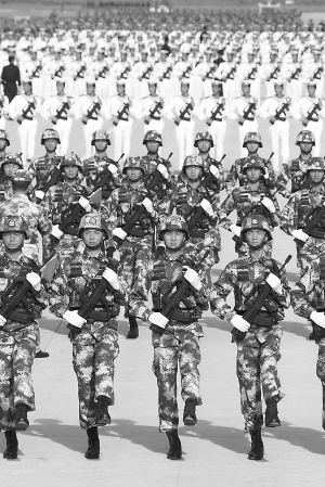 为了这个训练标准,官兵们在刻苦训练的同时,想了许多科学有效的训练办法。“知觉训练法”主要解决排面走不直和走不齐的问题。训练中,官兵们闭着眼睛跟着感觉走,寻找空间感、距离感。还有“变换训练法”“心理暗示法”“激励训练法”和“目标牵引法”等多种训练方法,都用在了“中国步伐”的训练之中。
