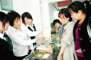 昨天上午,在周口邮政服务大厅内,一些集邮爱好者被一套集可观、可听、可触、可闻效果于一身的神奇邮票所吸引。据了解,为庆祝新中国成立60周年,弘扬我国优秀传统文化,中国邮政于本月13日发行了“世界上首套多媒体邮票”——《唐诗三百首》。(记者 王映 摄)