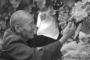 近日,商水县练集镇朱集行政村的朱大爷心里乐开了花,他种植的美人指葡萄陆续成熟、上市。朱大爷笑着说,他的一亩半地葡萄今年能收入1万多元呢!(记者 王映摄)