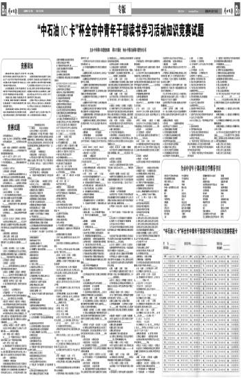 为深化读书学习活动,提高全市广大中青年干部读书学习的积极性,巩固读书学习成果,特举办“中石油IC卡”杯全市中青年干部读书学习活动知识竞赛。本次竞赛由中共周口市委组织部、周口日报社主办,由中国石油周口销售分公司协办。
