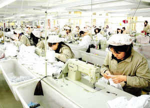 周口是农业大市,农业资源丰富,粮、棉、油等农产品产量均居全国前列。市委、市政府充分发挥资源优势,围绕纺织、食品加工、医药化工三大支柱产业,着力培育具有市场竞争力和知名度的名牌产品,把周口打造成全省乃至全国有影响的优质农副产品精深加工基地。图为项城市某服装厂的职工在赶制产品。(记者 孙安平 摄)