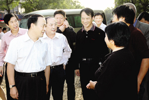 在峰基庄园小区,毛超峰走进群众家中询问天然气利用工程初装费、燃气价格等情况。在纺织路办事处韩营社区,毛超峰一行走进市民魏社家中,详细了解供水低压区管网改造工程情况。得知该工程切实解决了群众吃水困难的问题,广大群众都非常满意时,毛超峰高兴地点点头。在西大街低洼区改造工程现场,得知毛书记来现场办公,饱受出行难困扰的群众立即围拢上来,询问工程什么时候能竣工。毛超峰说:“保证年底完工,让大家走上平坦的柏油路。”听了市委书记的“承诺”,在场的群众高兴地鼓起掌。