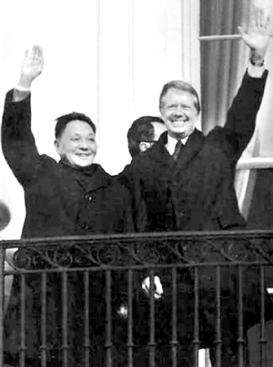1979年1月1日,中美发表联合公报,宣布两国正式建立外交关系。这是西方世界最后一个和我国建交的国家。1月28日至2月5日,邓小平副总理应美国总统卡特邀请,赴美进行正式访问。中美关系从此走上一个新的开端。3月1日,中美两国分别在对方首都正式建立大使馆。