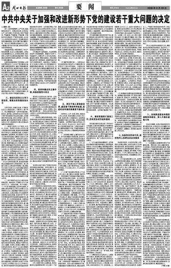 中共中央关于加强和改进新形势下党的建设若干重大问题的决定