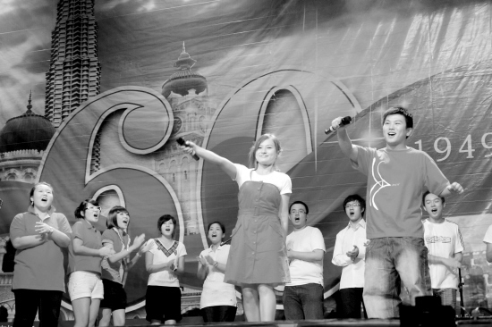 9月29日,中国留学生在马来西亚吉隆坡举办的庆祝新中国成立60周年晚会上表演。当日,中国留学生在马来西亚吉隆坡举办晚会,庆祝中华人民共和国成立60周年。新华社发