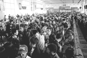 10月8日,旅客在沈阳北站排队检票。当日是“十一”黄金周最后一天,许多地方迎来返程客流高峰。 (张杰 摄)