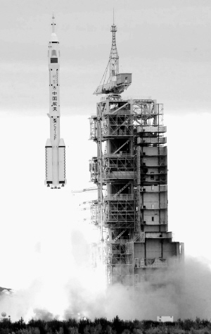 2005年10月12日,北京时间9时许,中国自主研制的神舟六号载人飞船,在酒泉卫星发射中心将两名中国航天员同时送上太空。10月17日凌晨,神舟六号载人飞船返回舱在内蒙古安全着陆。这是中国成功进行的首次多人多天载人航天飞行。 新华社发