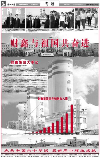 2003年,财鑫集团创立的“无退路管理”先后被评为河南省现代企业创新管理成果奖、全国企业现代化管理创新成果奖。财鑫集团首次进入河南省工业企业百强。