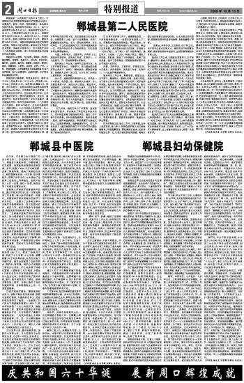 郸城县妇幼保健院始建于1979年,历经30年的奋斗拼搏,已从当初的只有平房14间、固定资产2万元的妇幼保健所,发展到今天的拥有病房楼、门诊楼各一幢,业务用房超过2万平方米,年收入达1600万元,固定资产2200万元的妇幼专科医院,创造了河南省县级妇幼保健院发展史上的辉煌。