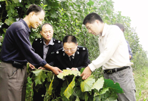 为保护林业资源,鹿邑县林业局认真做好林产品检疫和森林植物病虫害防治工作,对林木病虫害发生区域全部进行了有效防治。图为该县林业局森防站的工作人员正在为苗圃进行现场检疫。(胡红杰 摄)