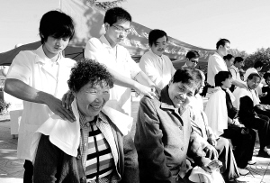 回报社会迎接国际盲人节 10月14日,江苏省宿迁市的盲人推拿师走上街头义务为市民推拿。 10月15日国际盲人节前夕,宿迁市宿城区残联盲人协会组织15位盲人按摩师走上街头为广大市民义诊、按摩,以回报社会对他们的关爱。 新华社发
