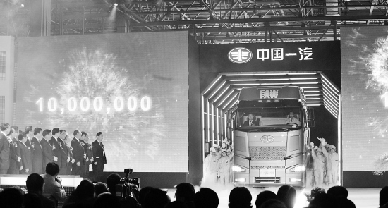 10月20日10时45分,2009年第1000万辆汽车在长春一汽诞生。中国成为继美、日之后第三个汽车年产破千万辆的国家,进入千万辆汽车大国行列。 新华社发
