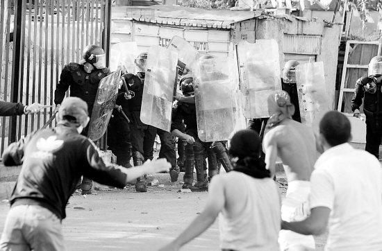 阿尔及利亚首都因住房问题而引发的骚乱仍在继续 10月20日,在阿尔及利亚首都阿尔及尔市中心麦达尼亚区一居民区,参加骚乱的年轻人与警察对峙。从19日开始,阿尔及尔市中心这一居民区居民因住房短缺问题举行游行示威并与防暴警察发生冲突,进而发展成骚乱,造成几十人受伤。目前,骚乱仍在继续。新华社发