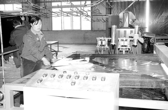 市委、市政府以技术创新、战略重组为切入点,引导企业加快技术改造,强力推动企业产品产业升级,培育发展一批产业化前景广阔、具有市场潜力或拥有自主知识产权的高新技术产品,提高产品附加值,降低生产成本。图为某皮革加工厂生产车间。(记者 孙安平 摄)
