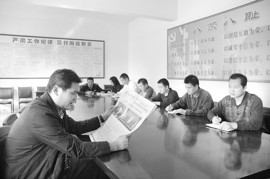 连日来,周口市开发区太昊路办事处采取多种形式,认真传达学习十七届四中全会精神。图为10月21日,该单位召开全体会议,学习传达市委全会精神,再掀学习十七届四中全会热潮。(记者 李寒 摄)