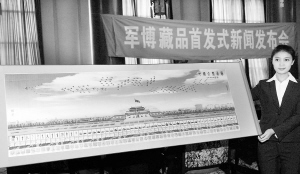 《中国大阅兵》等艺术品在京首发 10月25日,工作人员在展示丝绸刺绣的艺术收藏品《中国大阅兵图》。当日,由中国人民革命军事博物馆监制的《中国大阅兵》《红色记忆》艺术收藏品首发式在北京举行。《中国大阅兵》系列艺术藏品以2009年国庆阅兵为主题,包括以金、银、丝绸制成的纪念章和金箔制作的阅兵图等。 新华社记者 汪永基 摄