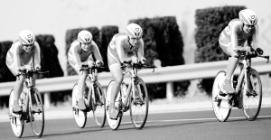 自行车——山东队夺得女子公路团体计时赛冠军 10月25日,山东队选手在比赛中。当日,在济南举行的第十一届全国运动会自行车女子公路团体计时赛的比赛中,由王健玲、杨敏、姜吻吻和李燕组成的山东队以1小时05分48秒479的成绩夺得冠军。