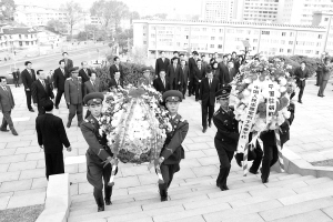 朝鲜隆重纪念中国人民志愿军入朝作战59周年 10月25日,朝鲜党政军领导人和各界群众等在平壤向中朝友谊塔敬献花圈。朝鲜党政军有关部门当天举行仪式,隆重纪念中国人民志愿军抗美援朝入朝作战59周年。新华社记者 张滨阳 摄
