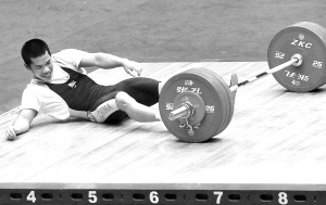 举重——快乐,并不只属于冠军 在第十一届全运会的举重赛场上,世界纪录多次被超越,全国纪录不断被打破。虽然每个项目的冠军只有一个,但比赛的快乐属于每一个勇于拼搏、敢于挑战的运动员。他们在举重的舞台上,全力地比赛,尽情地发挥自己的潜能,享受比赛带来的快乐。对于许多选手来说,今天的遗憾就是下一次成功的开始。这是10月23日,福建队选手陈洪庆在男子举重62公斤级的比赛中。他获得了这个项目的第六名。新华社记者 王雷 摄