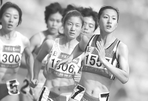 ▲田径——辽宁队选手周海燕获得女子800米冠军 10月26日,周海燕(右一)在决赛中。当日,在山东济南举行的第十一届全运会田径女子800米决赛中,辽宁队选手周海燕以2分03秒00的成绩获得冠军。