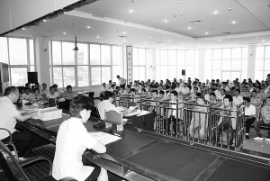 备受社会关注的项城黑社会性质组织犯罪案近日在项城市法院公开宣判。被告人王向阳等19人分别被判处有期徒刑14年9个月不等,并处罚金、追缴一切违法犯罪所得。(牛凌峰 摄)