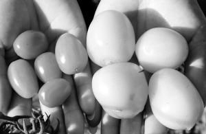 11月1日,一名工作人员展示普通的樱桃西红柿(左)与经过航天育种后选育出的樱桃西红柿新品种(右)。从2001年起,中国空间技术研究院、中国科学院遗传与发育生物学研究所与甘肃省天水市合作开展航天育种示范推广,到目前已育成辣椒、茄子、豇豆、黄瓜、番茄等18个航天蔬菜新品种,并在全国25个省区累计推广面积达90万亩,实现农业增值6.9亿元。据介绍,常规育种方法培育农作物新品种通常需5至8年时间,航天育种用3至4年就可培育出一个新品种,育成的蔬菜品种具备高产、抗病性强、营养成分高等特点。 新华社记者 韩传号 摄