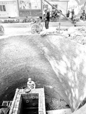 图为市区五一路改造工程正在进行中。据施工人员介绍,地下雨污管网已基本铺设好,目前正在建污水检查井。(记者 孙安平 摄)