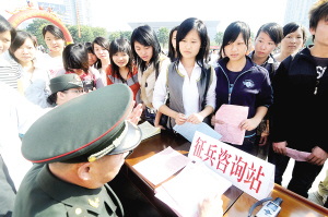 今年是我军首次面向全社会普遍征集女兵,全国各地的大批适龄女青年踊跃报名参军。(黄孝邦 摄)