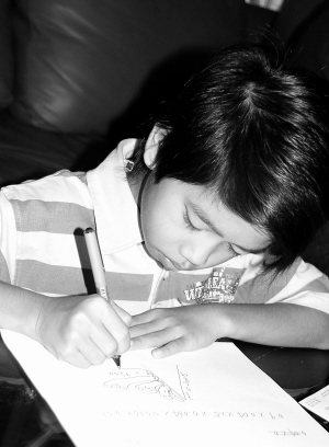 阿迪在家中演示长位数速算(拍摄于10月7日)。