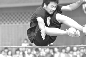 11月8日,鹿邑县高中一名参赛学生在进行跳高项目比赛。一直以来,鹿邑县高中通过举办艺术节、体育节来丰富素质教育的形式和内涵,提高广大学生的综合素质。(胡建波 苏献智 摄)