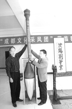 本报讯(记者 刘彦章 徐启峰/文 朱海龙/图)说人文章写得好,常用“如椽大笔”来形容,但是,真有如椽子一样的大笔吗?现在就有这么一支笔,能够配得上“如椽”这个称谓。它躺在汝阳刘笔业周口分公司内,将于近日被送到位于河南安阳的中国文字博物馆。